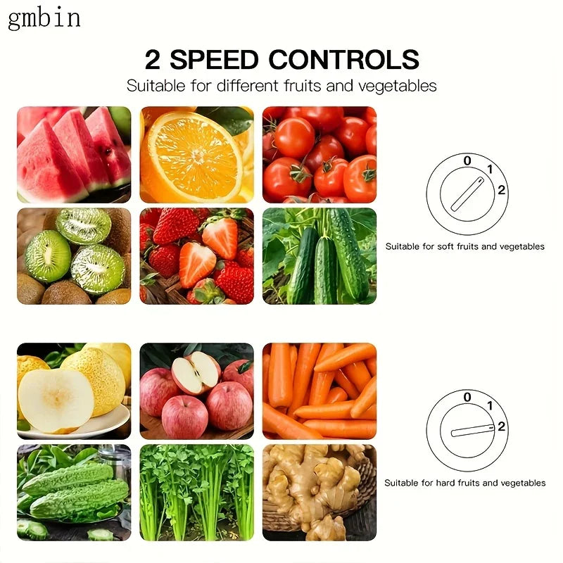 - ⚡ Motor potente: Extrae jugo rápidamente de frutas y verduras, incluso las más duras.